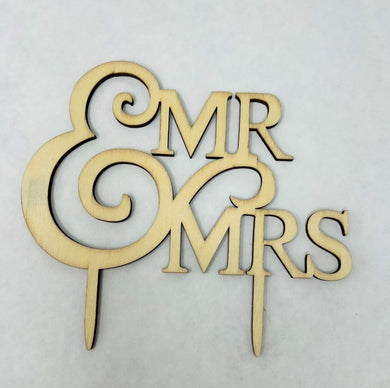 Cake Topper Mr & Mrs en Mader Lettra Cursiva