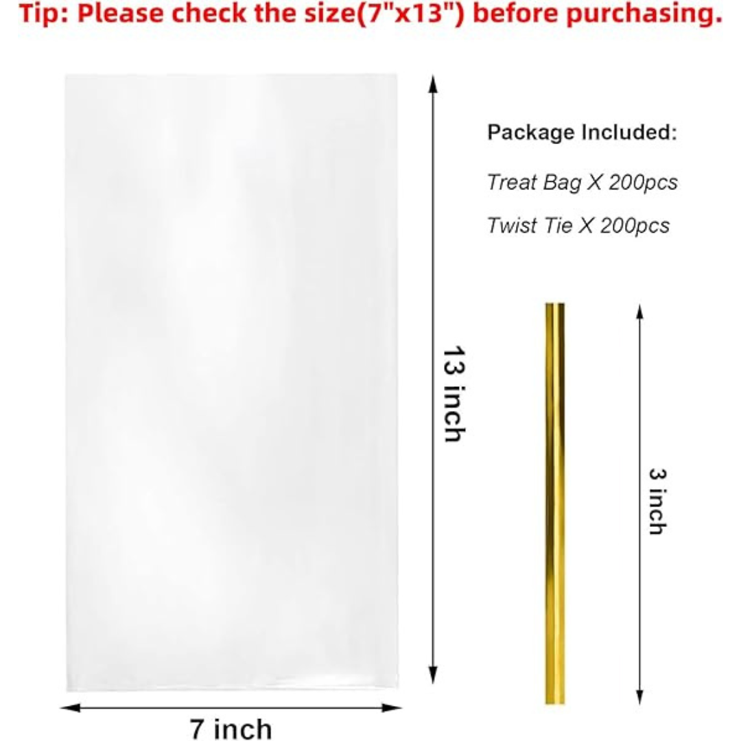 Bolsas de celofán para charcuteria, galletas, dulces, etc. 50 bolsas de regalo de plástico transparente de 7 x 13 pulgadas con lazos giratorios