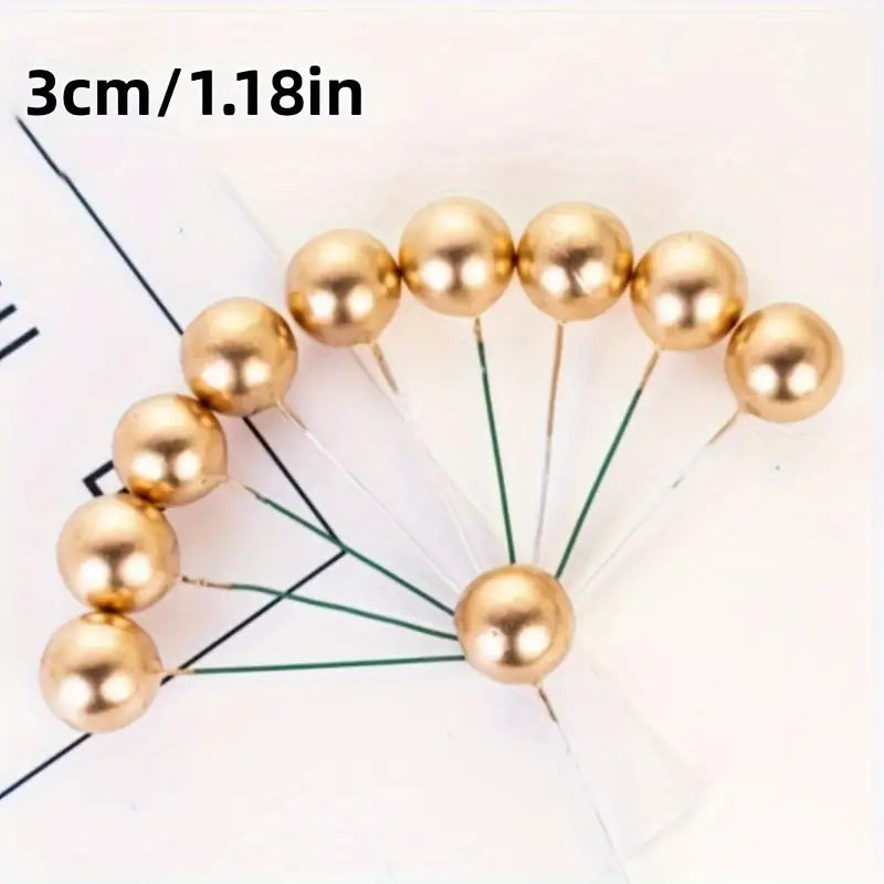 Esferas color dorado decoración que se coloca en la parte superior de un bizcocho, generalmente en eventos como bodas, cumpleaños, baby showers u otras celebraciones especiales.