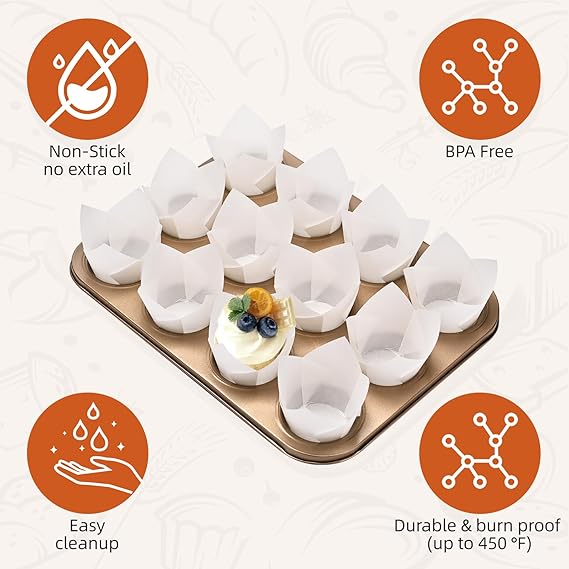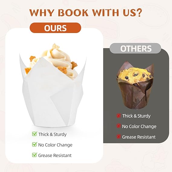 Tulipanes color blanco para cupcakes para hornear tazas, papel pergamino de primera calidad, para magdalenas a prueba de grasa.