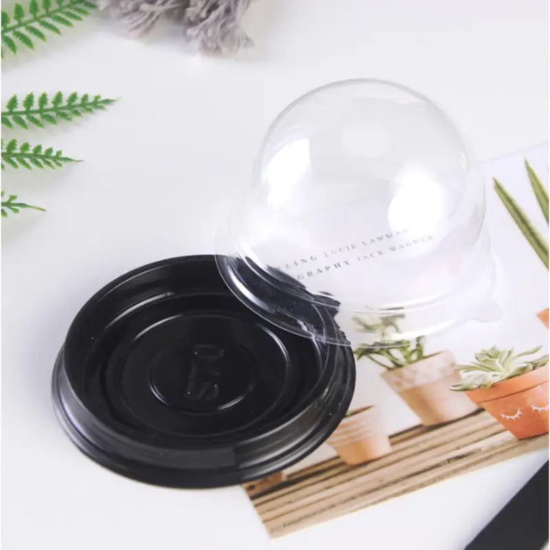 Recipiente de base negra con cúpula transparente - Paquete 10 Unidades
